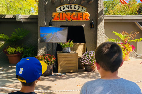 The first time I rode Zambezi Zinger, I was coming in with high expectations. It was the newest ride in Missouri at the time, and I was thrilled. I am very sad to report that the Zinger did not meet those expectations. It starts off with a spiral lift hill, paying homage to the old ride the closed in 1997. From then on, it is rough. It is shakier than the Timberwolf, and the seats are very tight and don't lock, so they get tighter throughout the ride. By the end, your legs are being squeezed. Then there's the track. Half of it is wooden, the other half is steel. It makes for a very weird riding experience, and I think they should have gone one way or the other. Overall, the theming is well done so that makes it a decent ride.